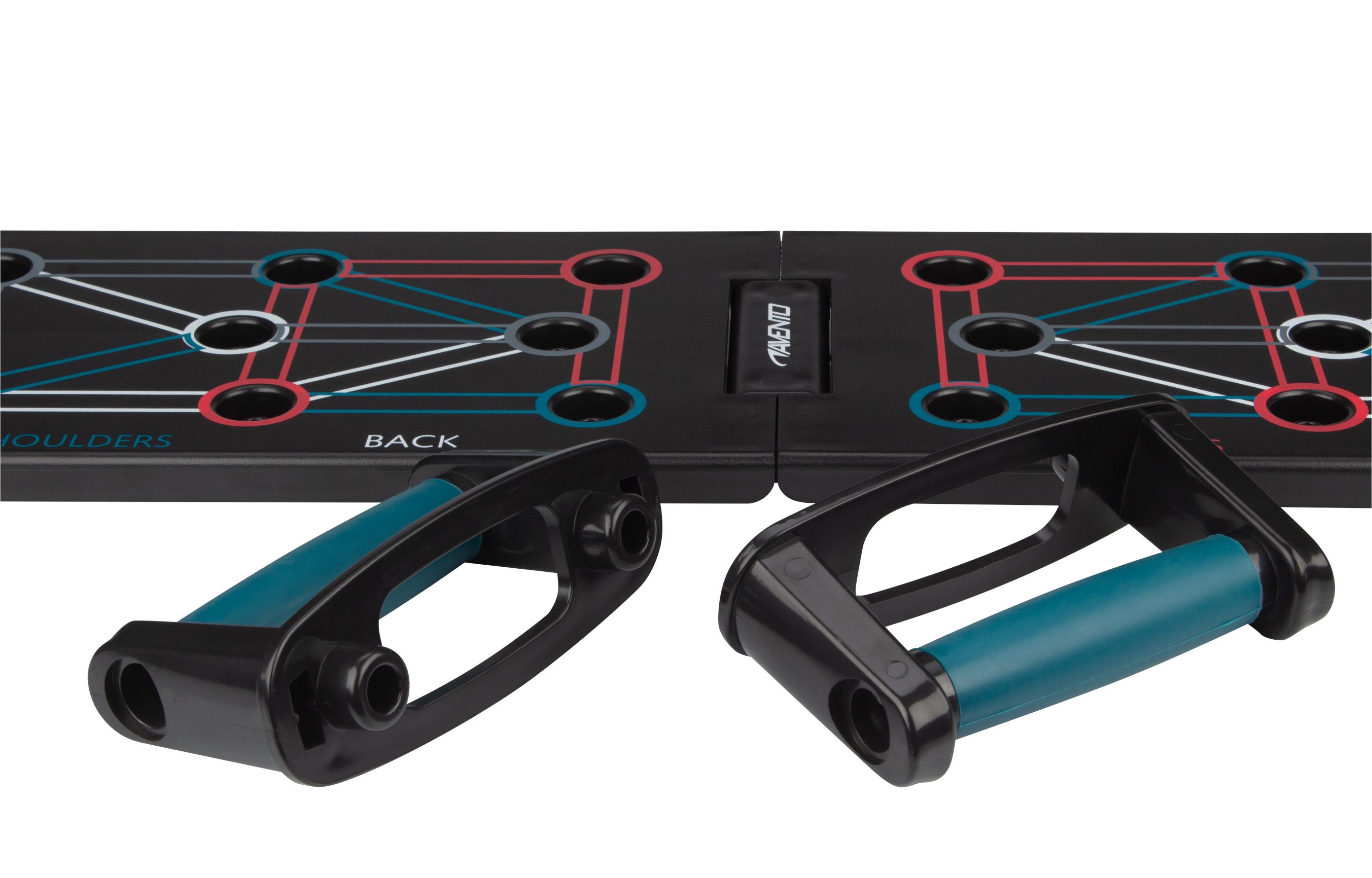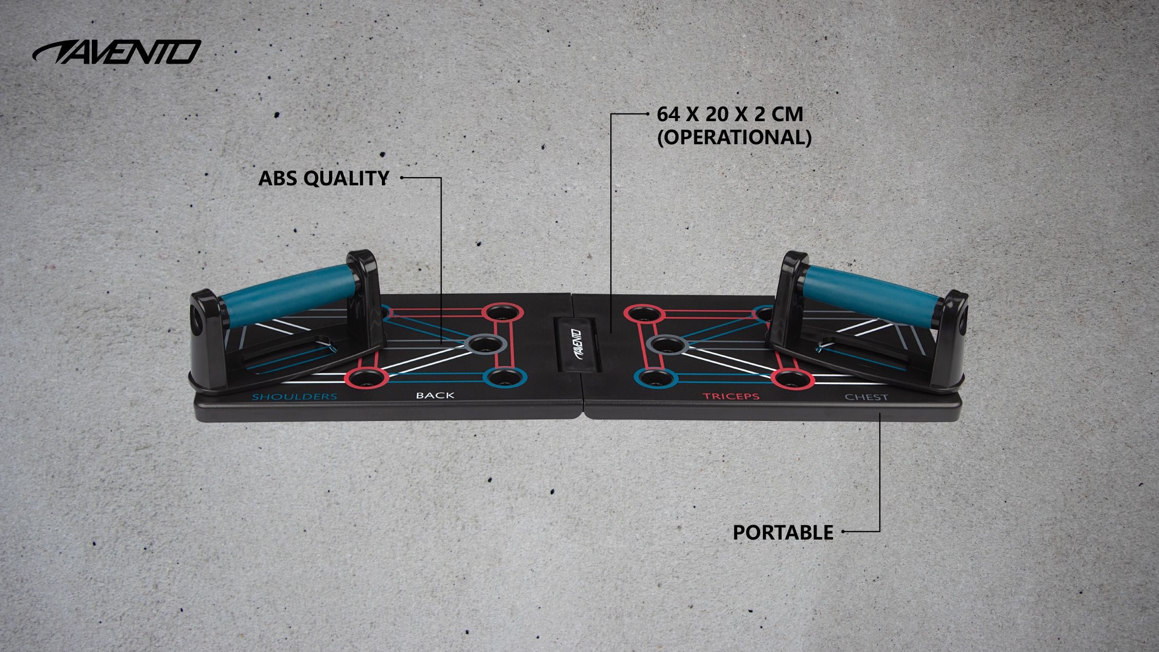 Το Avento Push-Up Board είναι μια καινοτόμος λύση για μια ολοκληρωμένη προπόνηση στο σπίτι. Τα 4 χρώματα στο ταμπλό αντιπροσωπεύουν 4 διαφορετικές ομάδες μυών που μπορούν να εκπαιδευτούν: πλάτη, στήθος, ώμους και τρικέφαλους μυς. Απλά τοποθετήστε τα υποστηρίγματα στο υποδεικνυόμενο χρώμα για να στοχεύσετε την επιθυμητή ομάδα μυών!