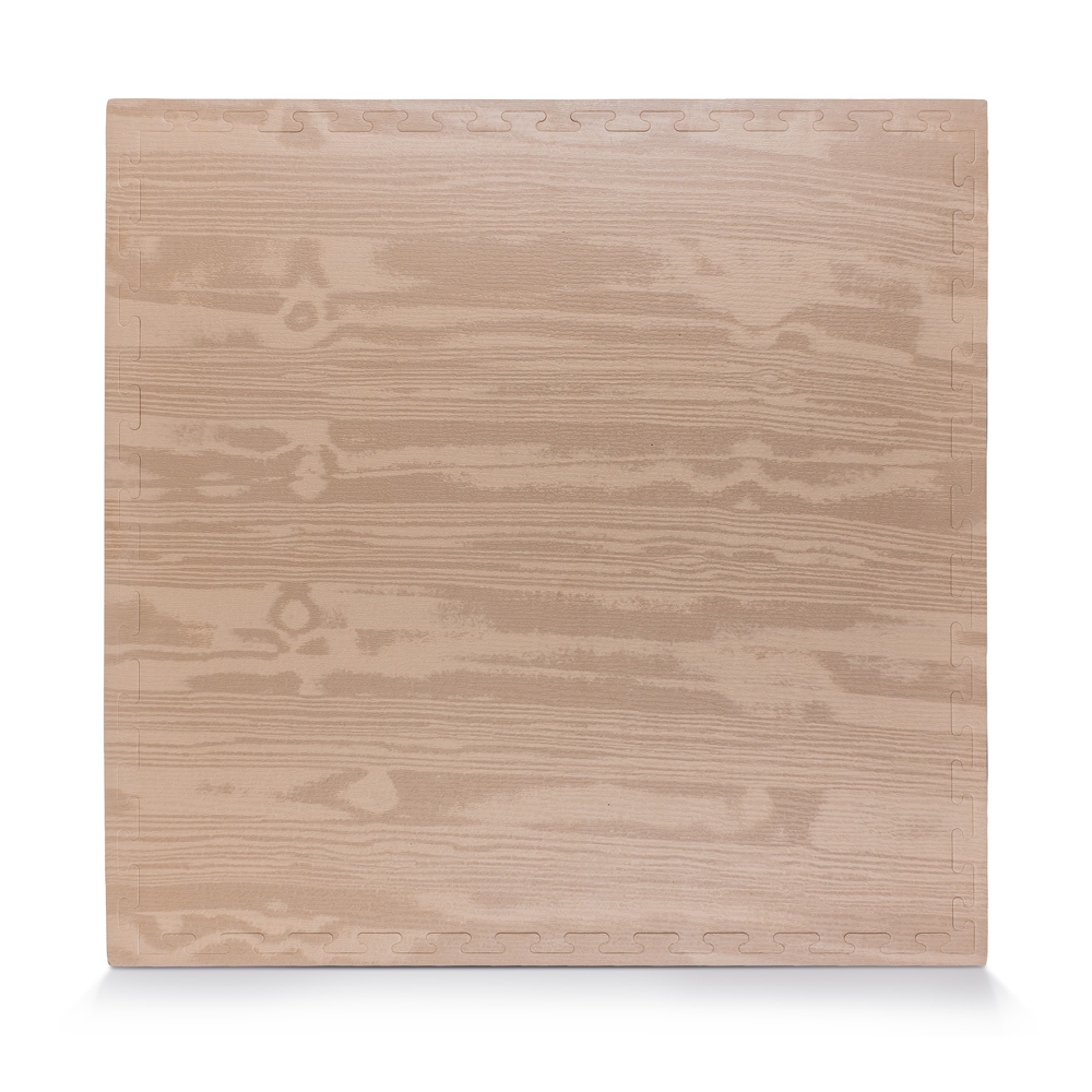 Η επιφάνεια σε καφέ χρώμα όψης ξύλου προσφέρει ζεστή και κομψή εμφάνιση, ενώ το πάχος των 2,5 cm διασφαλίζει άνεση και απορρόφηση κραδασμών κατά τις πτώσεις και όλες τις ασκήσεις.