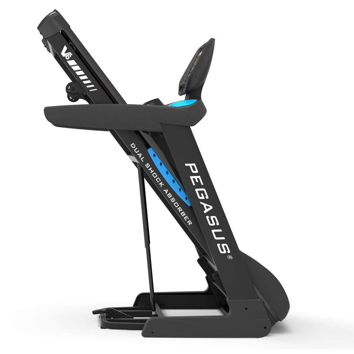 Ο ηλεκτρικός διάδρομος γυμναστικής Pegasus V6 είναι εξοπλισμένος με πανίσχυρο κινητήρα εναλλασσόμενου ρεύματος 3.0HP AC για προπονήσεις μεγαλύτερης διάρκειας, διαθέτει άνετο τάπητα 52x148 εκατοστών και προσφέρει πλήθος δυνατοτήτων όπως απαιτητικά προγράμματα, συμβατότητα Bluetooth και μέτρηση των καρδιακών παλμών σας με αισθητήρες αφής! Όπως όλοι οι διάδρομοι Pegasus®, έτσι και ο V6 διαθέτει σύστημα αναδίπλωσης Easy Lift System, που επιτρέπει στο διάδρομο σας να αναδιπλωθεί ώστε να μετακινηθεί και να αποθηκευτεί εύκολα.
