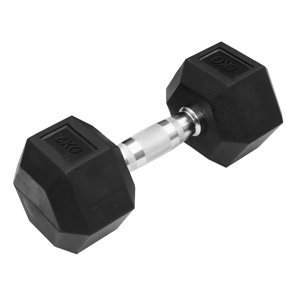 Εξάγωνος Αλτήρας με λάστιχο 5kg με άοσμο λάστιχο εξαιρετικής ποιότητας για οικιακή αλλά και επαγγελματική χρήση, σε εξάγωνο σχέδιο ώστε να αποτρέπεται η κύλιση. Οι εξάγωνοι αλτήρες χτίζουν και ενδυναμώνουν το σώμα σας. Σχεδιασμένοι με εργονομικές λαβές χρωμίου ώστε να μη σας γλιστρούν από το χέρι και να μεγιστοποιούν την άνεση, αυτοί οι αλτήρες είναι ιδανικά εργαλεία για τη γράμμωση των χεριών, του στήθους, της πλάτης, των κοιλιακών και των ποδιών. Το εξάγωνο σχέδιο αποτρέπει την κύλιση, ενώ το άοσμο λάστιχο προστατεύει το πάτωμά σας και χαρίζει κομψότητα. Εκτελέστε έναν πραγματικά τεράστιο αριθμό ασκήσεων με τους εξάγωνους αυτούς αλτήρες.
