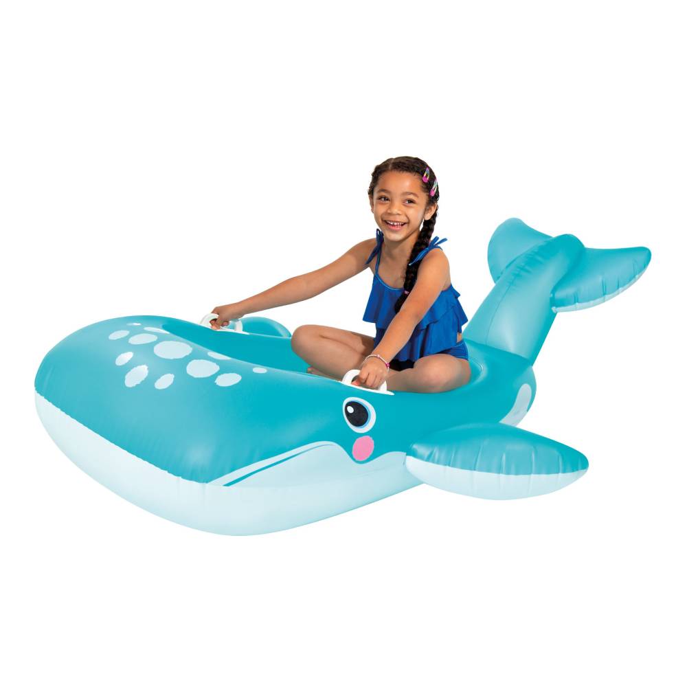 Η φάλαινα είναι ένα από τα πιο εντυπωσιακά ζώα του νερού. Με το φουσκωτό Intex Blue Whale Ride-On, τα παιδιά σας θα μπορούν να παίξουν στην θάλασσα με μια φάλαινα που μοιάζει αληθινή με την φωτορεαλιστική τεχνολογία εκτύπωσης της Intex. Περιλαμβάνει βαριάς κατασκευής χερούλια για να μπορείτε να έχετε τον έλεγχο του φουσκωτού.