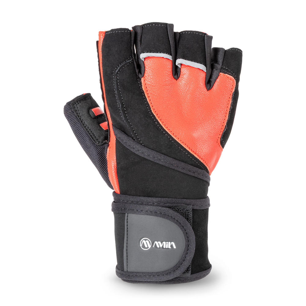 Γάντια άρσης βαρών σε μέγεθος Large από την Amila κατασκευασμένα με ανθεκτικό, γερό, μα ταυτόχρονα απαλό και άνετο συνθετικό δέρμα Amara εσωτερικά και στην ανάποδη και Foreway στις ενώσεις και στον αντίχειρα.