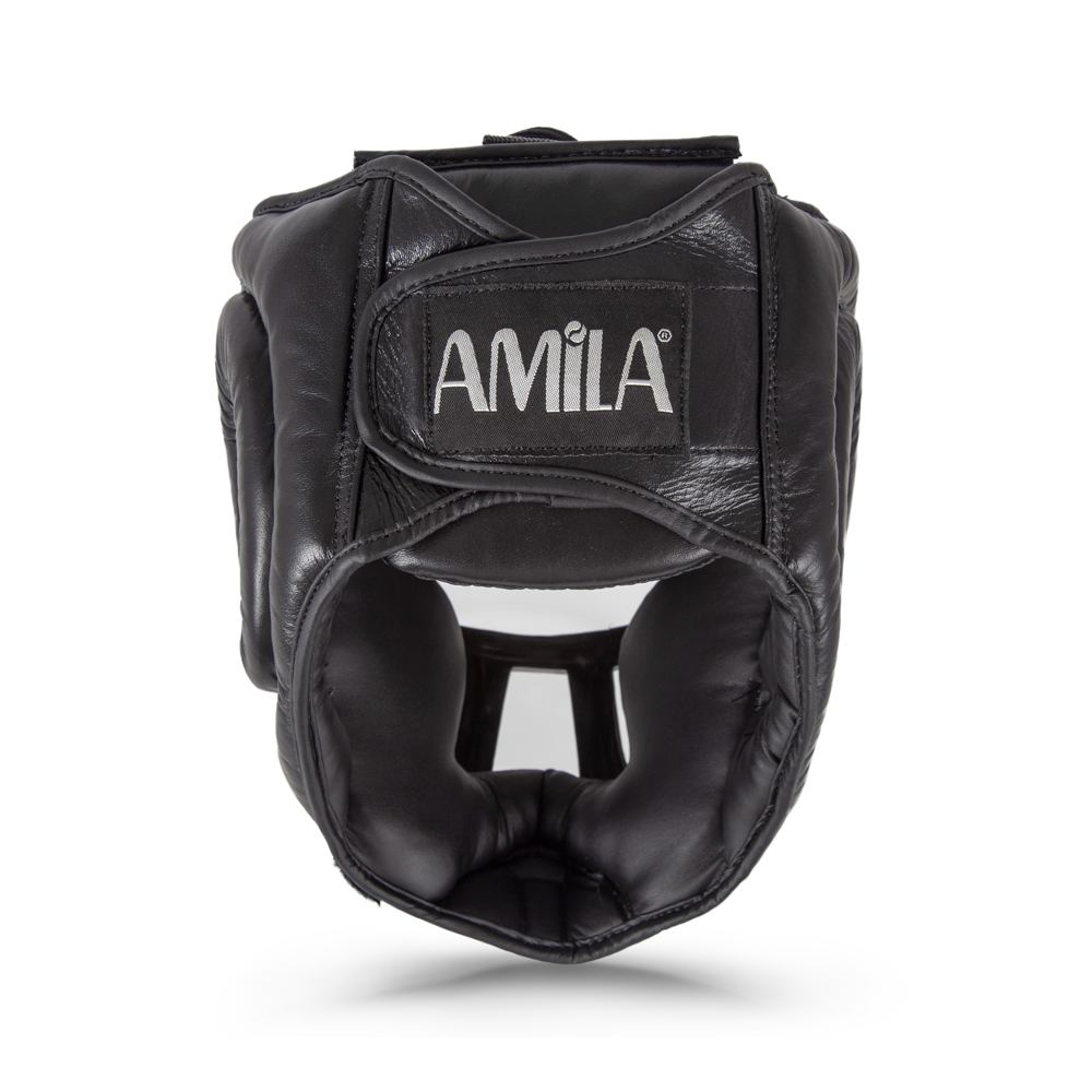 Προστατευτική κάσκα πυγμαχίας Amila σε μέγεθος L. Είναι κατασκευασμένη από δέρμα και προσφέρει ένα εξαιρετικό επίπεδο προστασίας για το κεφάλι. Διαθέτει εργονομικό σχήμα και δένει με Velcro για μεγαλύτερη σταθερότητα. Ο ειδικός σχεδιασμός της προσφέρει εξαιρετική απορρόφηση των χτυπημάτων και υψηλή προστασία των αθλητών.