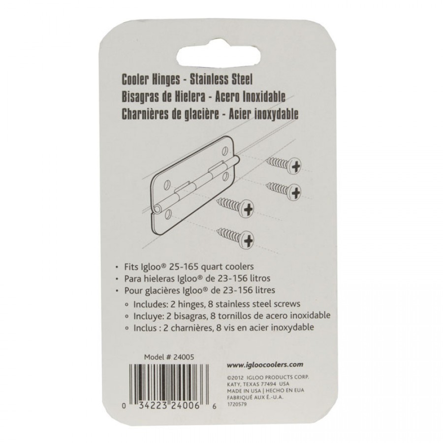 Μεντεσέδες ανοξείδωτοι, ζεύγος, ανταλλακτικό, για όλα τα ψυγεία IGLOO με μεντεσέδες, μεταξύ 25 και 165 Qt. Σχεδιασμένος έτσι ώστε να ταιριάζει σε όλα τα μοντέλα IGLOO, όσο παλιά και να είναι. Κατασκευασμένος από 100% ανοξείδωτο ατσάλι