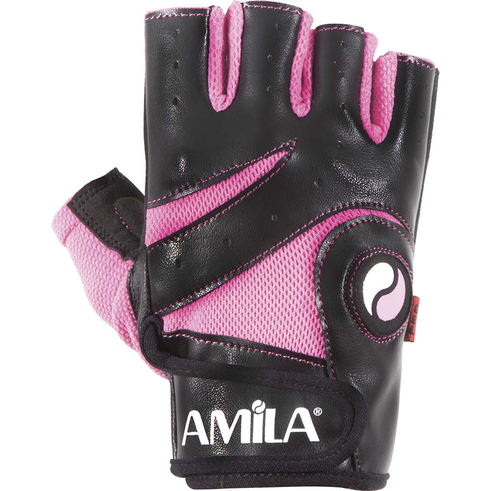 Γάντια γυμναστικής AMILA από συνθετικό δέρμα Amara και PU. Περιλαμβάνει εσωτερικά GEL για την απορρόφηση της πίεσης της μπάρας και εξωτερικά στο αντίχειρα περιλαμβάνει πετσέτα. Μία οικονομική και ανθεκτική πρόταση από την AMILA.