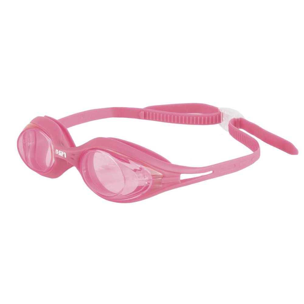 Παιδικά γυαλιά κολύμβησης από την AMILA με λουράκι από σιλικόνη κατάλληλα για παιδιά. Οι φακοί του γυαλιού είναι χρωματιστοί, ενώ γύρω από το μάτι θα βρείτε σιλικόνη για την τέλεια εφαρμογή. Η γέφυρα της μύτης δεν είναι ρυθμιζόμενη και είναι σταθερή. Τέλος υπάρχει ρυθμιστής στο λουράκι στο πίσω μέρος που επιτρέπει στο λουρί να μεγαλώνει ή να μικραίνει για να δένει σωστά στο κεφάλι χωρίς να μπαίνουν νερά ενώ παράλληλα να είναι άνετο χωρίς να πιέζει υπερβολικά. Ένας πολύ εύκολος και γρήγορος σχεδιασμός ρύθμισης. Σε περίπτωση που θέλετε να σφίξετε τραβήξτε τα λουριά από το πίσω μέρος ενώ σε περίπτωση που θέλετε να το χαλαρώσετε πατήστε το ένα (και μοναδικό) κουμπί και χαλαρώστε εναλλάξ τις πλευρές.