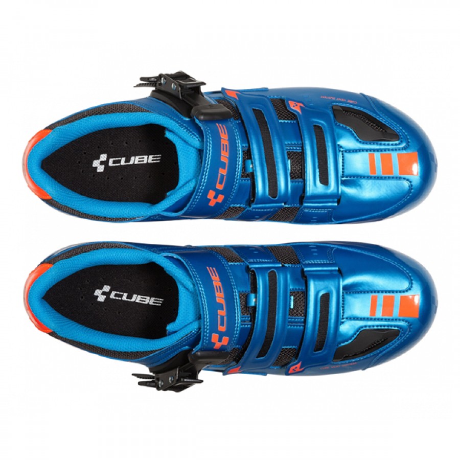 Τα παπούτσια ποδηλασίας Pro από την Cube έχει σχεδιαστεί ειδικά για ποδηλασία δρόμου και ειδικά για ποδηλάτες που έχουν στόχο τις επιδόσεις. Λόγω των ινών που διαθέτει στην σόλα, προσφέρει εξαιρετική άνεση αλλά ταυτόχρονα μπορεί και περνάει όλη την δύναμη από τα πόδια σας στο πετάλι, χωρίς πολλές απώλειες. Στο πίσω μέρος του παπουτσιού έχουν τοποθετηθεί ανακλαστικά για την αύξηση της παθητικής σας ασφάλειας και οι δυο ιμάντες velcro σε συνδυασμό με το σύστημα σφράγισης με καστάνια, σας παρέχουν μέγιστη άνεση και εξαιρετικό εργονομικό χειρισμό.