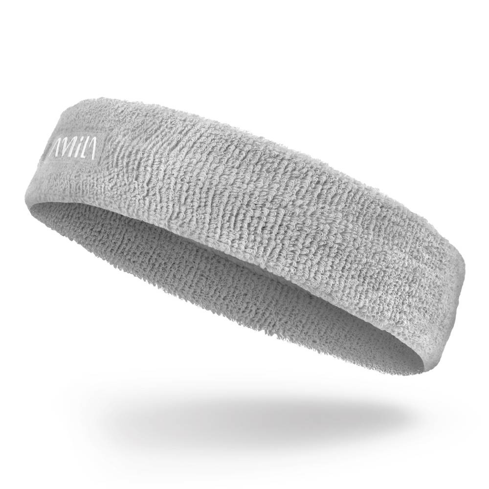 Περιμετώπιο από την Amila σε γκρι χρώμα υψηλής ποιότητας για απορρόφηση του ιδρώτα κατασκευασμένα από βαμβάκι. Ραμμένο λογότυπο AMILA επάνω στο προϊόν πλενόμενο στο πλυντήριο.