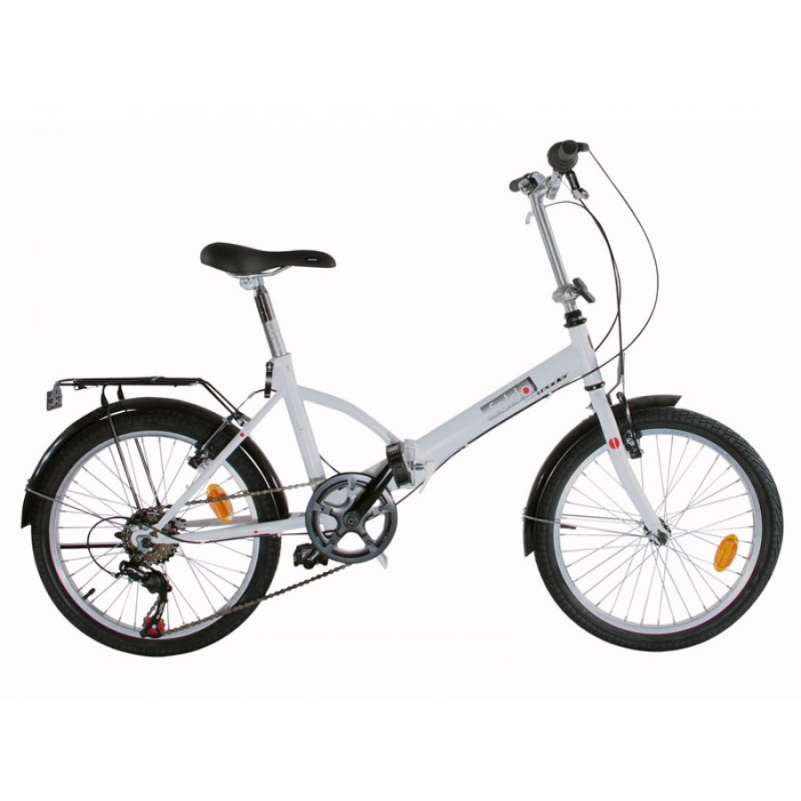Σπαστό ποδήλατο Foldo της Leader με σιδερένιο σκελετό και 6 ταχύτητες Shimano. Έρχεται εξοπλισμένο με οπίσθια σχάρα και φτερά. Μεταφέρεται εύκολα με τα μέσα μαζικής μεταφοράς ή το αυτοκίνητο.