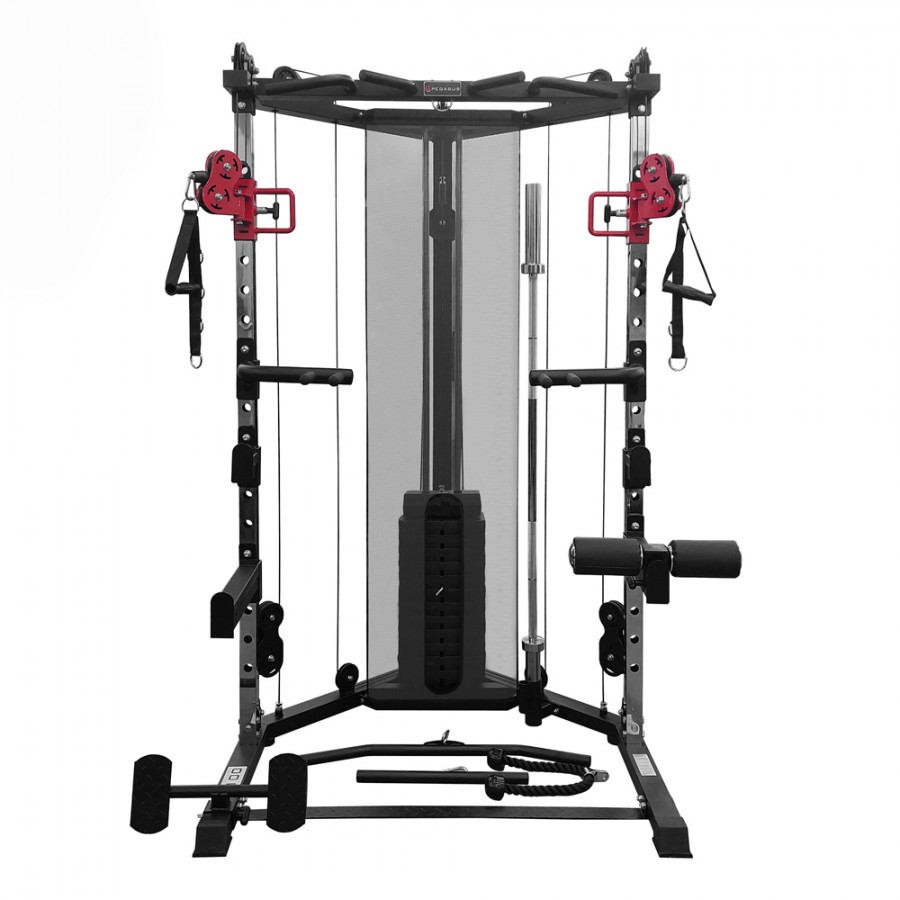 Το πολυόργανο γυμναστικής Pegasus Functional Trainer/Half Rack FT-100, ανήκει σε μία νέα δυναμική σειρά και προσφέρει μία ευρεία σειρά επιλογών εξάσκησης για να ενδυναμώσετε ολόκληρο το σώμα σας. Σε συνδυασμό με έναν ελεύθερο πάγκο, έχετε στην διάθεσή σας ένα εντυπωσιακό πλήθος ασκήσεων για να ξεπεράσετε τους στόχους σας! Το πολυλειτουργικό μηχάνημα Pegasus® FT-100 διαθέτει ισχυρή κατασκευή από χάλυβα διαμετρήματος 50x50-70x1,5mm. Συνδυάζει τα οφέλη της λειτουργικής προπόνησης (Functional Trainer) με την άνεση μιας καλωδιακής μηχανής (Crossover) και σταθμού Half Rack επιτρέποντας στους χρήστες να εκτελούν ένα ευρύ φάσμα ασκήσεων που στοχεύουν σε διάφορες μυϊκές ομάδες. Με τον συμπαγή σχεδιασμό του εξοικονομεί χώρο, καθιστώντας το ιδανικό για εγκατάσταση στο οικιακό σας γυμναστήριο. Οι ασκήσεις Crossover είναι πολύ σημαντικές για όποιον επιθυμεί να στοχεύσει συγκεκριμένους μύες για γενικότερη μυϊκή ενδυνάμωση. Το FT-100 χρησιμοποιεί βαρέως τύπου τροχαλίες, με ενσωματωμένα ρουλεμάν, που περιστρέφονται κατά 180° και ακολουθούν τη φορά σας για ακόμη πιο φυσική κίνηση. Οι τροχαλίες είναι ρυθμιζόμενες σε 14 θέσεις καθ' ύψος, για γρήγορη εναλλαγή ασκήσεων. Η ευελιξία του μηχανήματος και η ευκολία των ρυθμίσεων κάνει τα super sets εύκολη υπόθεση. Το σύστημα μονόζυγου που διαθέτει FT-100 σας δίνει την δυνατότητα να κρατήσετε τις λαβές σε διαφορετικές γωνίες έτσι ώστε όταν εκτελείτε έλξεις κορμού να γυμνάσετε την πλάτη και τους δικέφαλους χεριών με τα μέγιστα δυνατά αποτελέσματα! Η ποιότητα κατασκευής προσφέρει δυνατότητα μέγιστου βάρους χρήστη έως 120 kg.