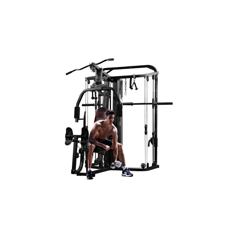 Το πολυόργανο Pegasus® JX-DS305 με Σύστημα Smith σας επιτρέπει ταυτόχρονη εκτέλεση σχεδόν οποιασδήποτε άσκησης σε μέχρι και 3 διαφορετικούς χρήστες. Από τη μια πλευρά έχετε μία πλήρως λειτουργική θέση για καθιστές πιέσεις στήθους και pec deck. Πάνω από το κεφάλι σας υπάρχει μία τροχαλία πλάτης και μπροστά σας υπάρχει μία ρυθμιζόμενη πρέσα ποδιών 40 μοιρών. Και αν αυτά δεν αρκούν, στην άλλη του πλευρά το JX-DS305 περιλαμβάνει επίσης μονόζυγο, πλήρως ρυθμιζόμενο σύστημα crossover και φυσικά μηχανή Smith! Το JX-DS305 χρησιμοποιεί συρματόσχοινα αεροπορικού τύπου με αντοχή έλξης περισσότερα από 900 κιλά, τα οποία είναι περασμένα σε βαρέως τύπου τροχαλίες, οι οποίες περιστρέφονται και ακολουθούν τη φορά σας για ακόμη πιο φυσική κίνηση. Οι τροχαλίες ρυθμίζονται κατά ύψος σε 20 διαφορετικές θέσεις, κάνοντας τα super sets εύκολη υπόθεση.