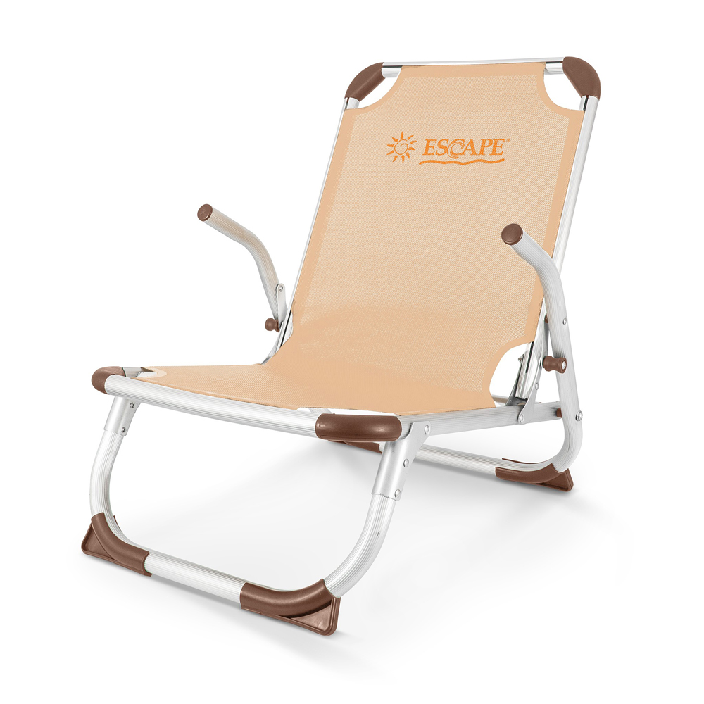 Καρέκλα παραλίας χαμηλή από την Escape, με χαμηλά ποδαράκια για μεγαλύτερη σταθερότητα στην άμμο. Το ύφασμα της είναι Textilene 2x1 και ο σκελετός από αλουμίνιο 28x1,1mm ραβδωτός. Είναι ελαφρύ, αναδιπλώνει εύκολα και είναι κατάλληλο για παραλία. Θα το βρείτε διαθέσιμο σε μεγάλη ποικιλία χρωμάτων.