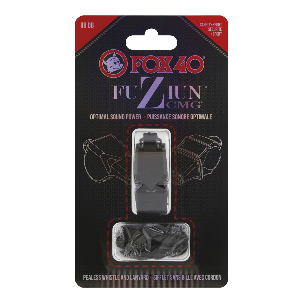 Η Fox 40® FUZIUN CMG® συνδυάζει την ξεχωριστή υψηλής συχνότητας ακουστική της Fox 40® Classic με τον διαπεραστικό ήχο που παράγει η Fox40 Sonik Blast. Η εξαιρετικά υψηλή συχνότητα των άνω θαλάμων επισκιάζει το θόρυβο από τον κόσμο και το περιβάλλον, ενώ η συχνότητα του κάτω θαλάμου επιτρέπει στον ήχο να ταξιδέψει μεγαλύτερη απόσταση. Διαθέτει το CMG (Cushioned Mouth Grip), ένα θερμοπλαστικό υλικό που δίνει προστασία και κράτημα. Ιδανική για ανθρώπους που κρατάνε πολλές ώρες την σφυρίχτρα στο στόμα. Εργονομικός σχεδιασμός για να την πιάνετε εύκολα με το χέρι σας. Άψογη, με σταθερό και έμπιστο σφύριγμα και εύκολη στο σφύριγμα χωρίς τον κίνδυνο υπερβολικού σφυρίγματος. Δυνατή, στα 118dB, θα ακουστείτε πάνω από τους θορύβους του περιβάλλοντος, όπως θορυβώδες κοινό, θόρυβο από μηχανές, ενώ δεν θα επηρεαστεί από τους δυνατούς ανέμους. Ο ήχος θα ακουστεί 100άδες μέτρα μακριά