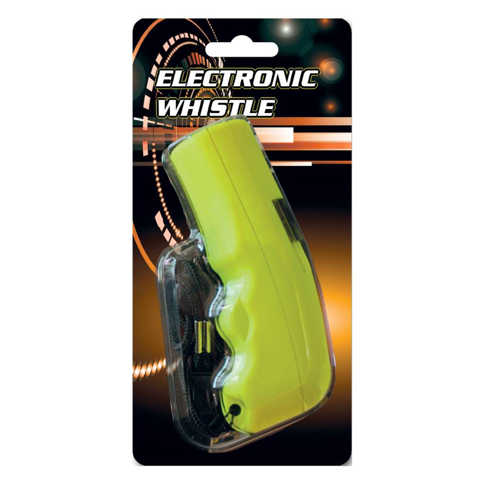 Ηλεκτρονική σφυρίχτρα Amila σε κίτρινο χρώμα, με ένταση στα 114-120dB για να ελέγχετε τον ήχο! Διαθέτει λειτουργία με κουμπί. Προσαρμόζεται με κορδόνι για εύκολο κράτημα και καλύτερη χρήση κατά την διάρκεια αγώνων ή προπονήσεων! Το κορδόνι περιλαμβάνεται στην συσκευασία και έχει μήκος 42cm.
