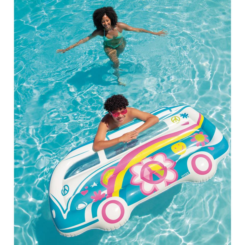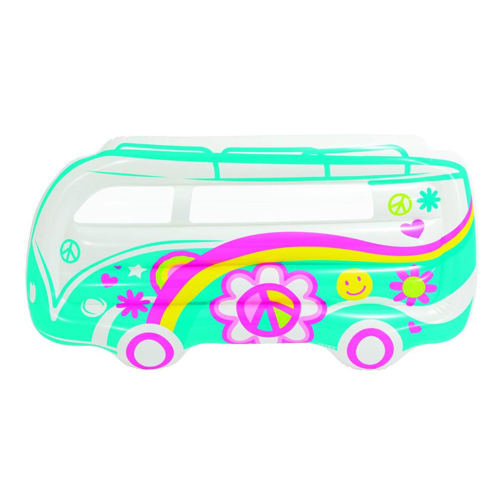 Φουσκωτό στρώμα θαλάσσης της Intex σε σχήμα βαν με υπέροχα χρώματα και σχέδια, κατάλληλο για παιδιά από 9 ετών. Αντέχει βάρος έως 100 κιλά. Είναι ιδανικό για να απολαμβάνουν τα παιδιά στιγμές χαλάρωσης στην θάλασσα και την πισίνα. Διαθέτει διάφανα παράθυρα για να μπορείτε να βλέπετε μέσα στο νερό.