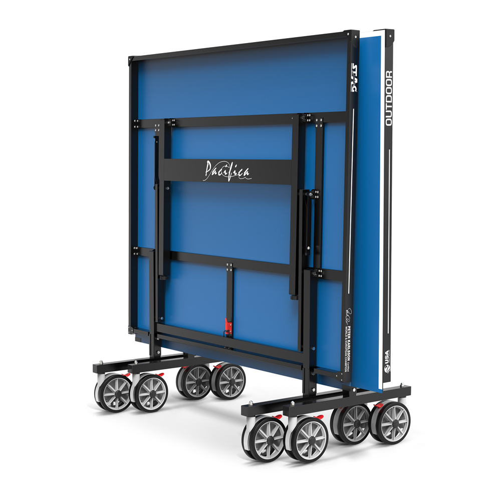 Το τραπέζι ping pong εξωτερικού χώρου Pacifica από την Stag, είναι ιδανικό για παιχνίδι μεταξύ μελών της οικογένειας, φίλων ή ακόμα και πιο έμπειρων παικτών. Τα πόδια του, με τη δυνατότητα ρύθμισης του ύψους, και τα δυνατά του φρένα διασφαλίζουν την σταθερότητά του, ακόμη και σε κήπους με ανώμαλο έδαφος. Με τους 4 μεγάλους διπλούς τροχούς σε κάθε φύλλο, μπορεί να μετακινηθεί εύκολα πηγαίνοντας σε μέρη που θα ήταν αδύνατο με τα άλλα τραπέζια.