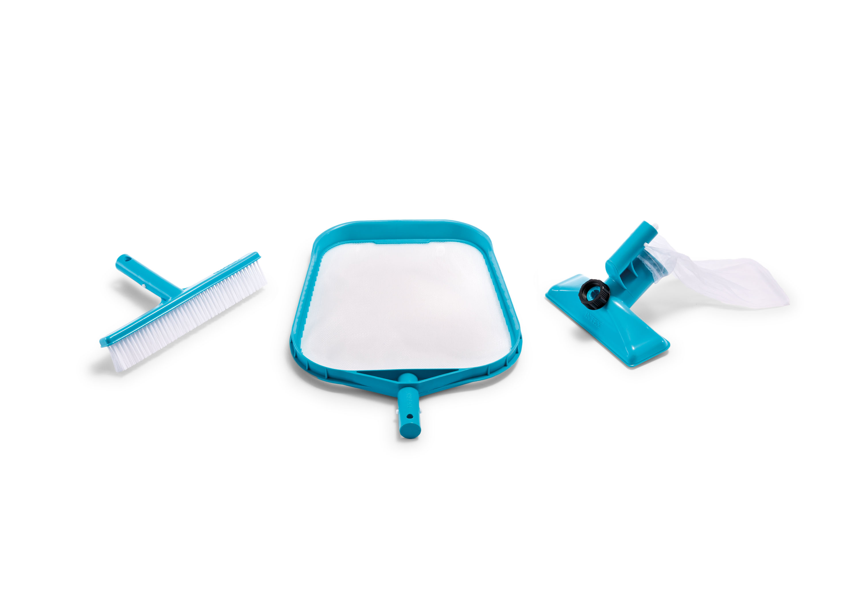 Αν έχετε πισίνα στο σπίτι ή το εξοχικό, θα πρέπει και να την καθαρίζετε. Το βασικό κιτ καθαρισμού πισίνας από την Intex περιλαμβάνει εξαρτήματα για αφαίρεση φύλλων από την επιφάνεια του νερού, βούρτσας για τους τοίχους και σκούπα για το πάτωμα.