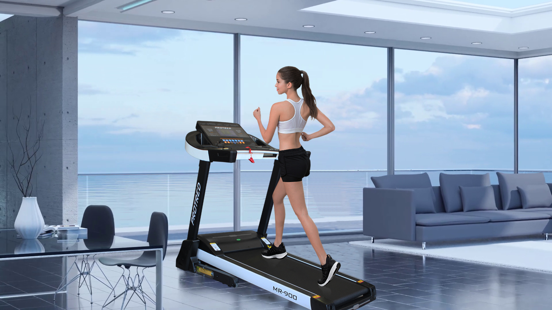 Το πρωτοποριακό αντικραδασμικό σύστημα του αποτελείται από ισχυρά αμορτισέρ, τα οποία μειώνουν τους κραδασμούς από το άνετο δάπεδο πλάτους 48cm, ενώ θα βρείτε και ένα έξυπνο σύστημα λίπανσης. Όλα αυτά καθιστούν τον MR-900 ιδανική επιλογή για το οικιακό σας γυμναστήριο! Η κομψή κονσόλα του MR-900 ελέγχει ένα σημαντικό αριθμό χαρακτηριστικών, τα οποία μπορείτε να παρακολουθείτε ανά πάσα στιγμή. Ειδικοί αισθητήρες αφής θα παρακολουθούν τον καρδιακό παλμό σας κατά την άσκηση, η υποδοχή MP3 μαζί με το σύστημα ήχου σας επιτρέπουν να ακούτε τα αγαπημένα σας κομμάτια, ενώ η θύρα USB σας επιτρέπει να φορτίζετε τις συσκευές σας.
