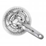 Δισκοβραχίονας ποδηλάτου αλουμινίου σε νίκελ απόχρωση κατάλληλος για ποδήλατα βουνού. Είναι συμβατός με μεσαίες τριβές κλειστού τύπου. Διαθέτει μήκος βραχίονων 175mm και 3 δίσκους 22Τ / 32Τ / 42Τ.