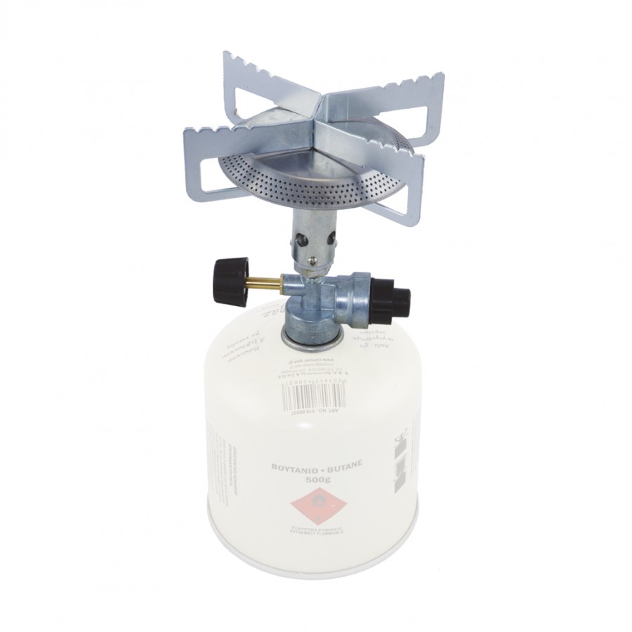 Εστία με ρυθμιστή πίεσης για φιάλη υγραερίου 500gr με βαλβίδα. Διαθέτει βαλβίδα και είναι πρακτικό και πολύ εύκολο στη χρήση ακόμα και στο camping.