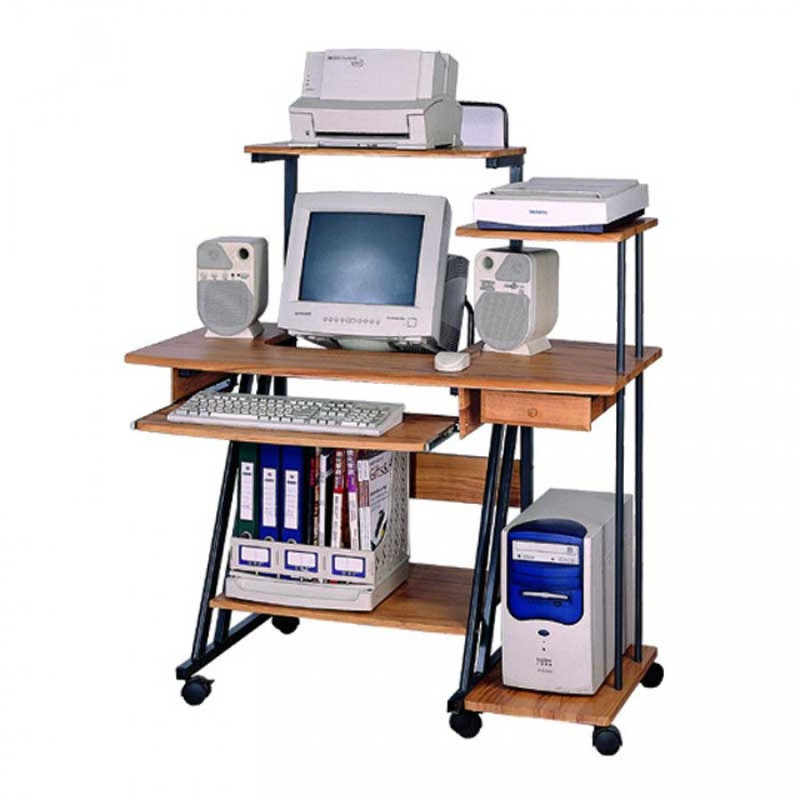 Γραφείο υπολογιστή Lux Line μεταλλικό με επιφάνεια εργασίας MDF σε χρωματισμό του καρυδιάς. Σχεδιαστικά προσφέρει οικονομία χώρου και λειτουργικότητας. Με συρτάρι για πληκτρολόγιο και ράφια για εκτυπωτή, scaner, βιβλία και ότι άλλο σας είναι απαραίτητο. Επιπλέον διαθέτει ροδάκια μετακίνησης με φρένο ασφαλείας.
