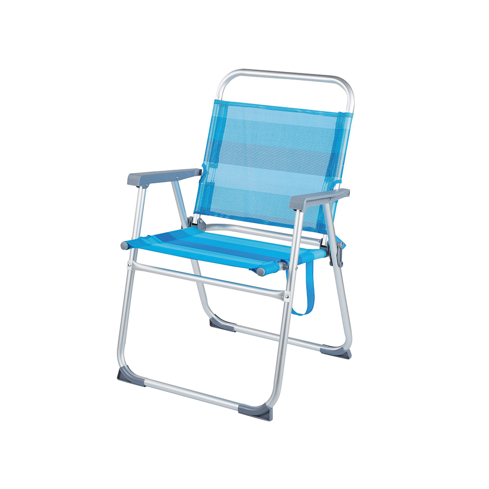 Καρέκλα παραλίας αλουμινίου Textilene 1x1 από την Summer Club με ψηλή πλάτη. Διπλώνει εύκολα και γρήγορα και είναι ιδανική για το camping αλλά και τον κήπο ή την βεράντα σας. Οι διαστάσεις της είναι 58x64x82cm και είναι πολύ ελαφριά. Θα την βρείτε διαθέσιμη σε μπλε χρώμα.