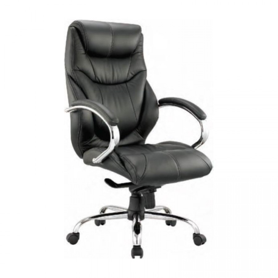 Καρέκλα γραφείου διευθυντή από την Velco με μεταλλικά μπράτσα και βάση, με μηχανισμό δύο λειτουργιών, ανάκλισης και ανύψωσης και με εσωτερική διάσταση καθίσματος 52cm.