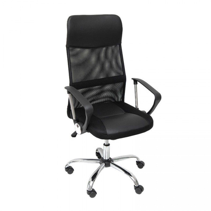 Πολυθρόνα γραφείου διευθυντή με διάτρητη πλάτη από την Velco με μεταλλική βάση, μεταλλικά μπράτσα με επένδυση PP για μεγαλύτερη άνεση, με μηχανισμό μονής λειτουργίας και με εσωτερική διάσταση καθίσματος 48cm.