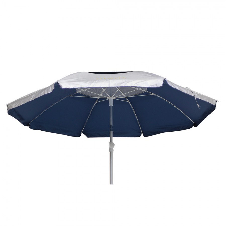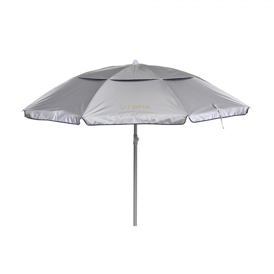Η ομπρέλα θαλάσσης Summer Club Utopia έχει διάμετρο 225cm και 8 ακτίνες από fiberglass 6mm . Διαθέτει σπάσιμο για να προσφέρει μεγαλύτερη σκιά, μεγάλο αεραγωγό και είναι κατασκευασμένη εσωτερικά από ύφασμα Nylon 75gr/m2 με διπλή βαφή Silver εξωτερικά & αδιαβροχοποίηση.