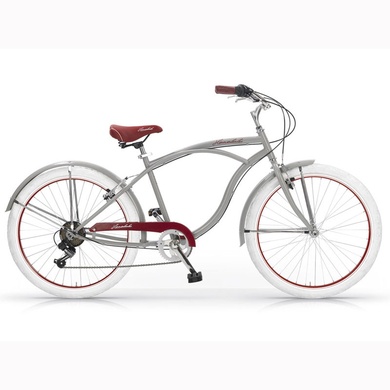 Το Honolulu Grey από την MBM είναι ένα ποδήλατο cruiser με όρθια θέση οδήγησης, σιδερένιο σκελετό για μεγαλύτερη ανθεκτικότητα, σιδερένιο πιρούνι και 6 ταχύτητες Shimano για περισσότερη αξιοπιστία. Συνδυάζει την άνεση και το στιλ με την απλότητα, ιδανικό για βόλτες στην πόλη ή την εξοχή.