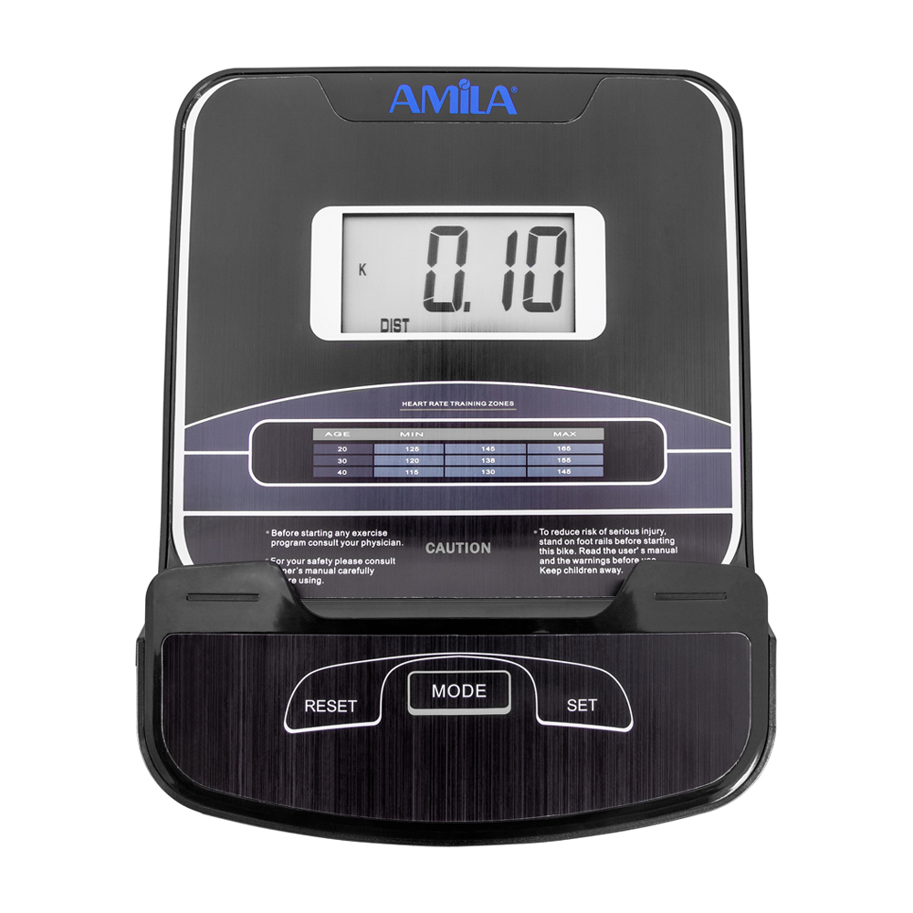 Ποδήλατο Γυμναστικής Amila Cardio 5105B 92400 με 8 χειροκίνητες επιλογές αντίστασης και με βάρος δίσκου 4 κιλά. Διαθέτει όλες τις απαραίτητες ενδείξεις για την προπόνηση σας όπως χρόνος, ταχύτητα, απόσταση, θερμίδες και καρδιακούς παλμούς.