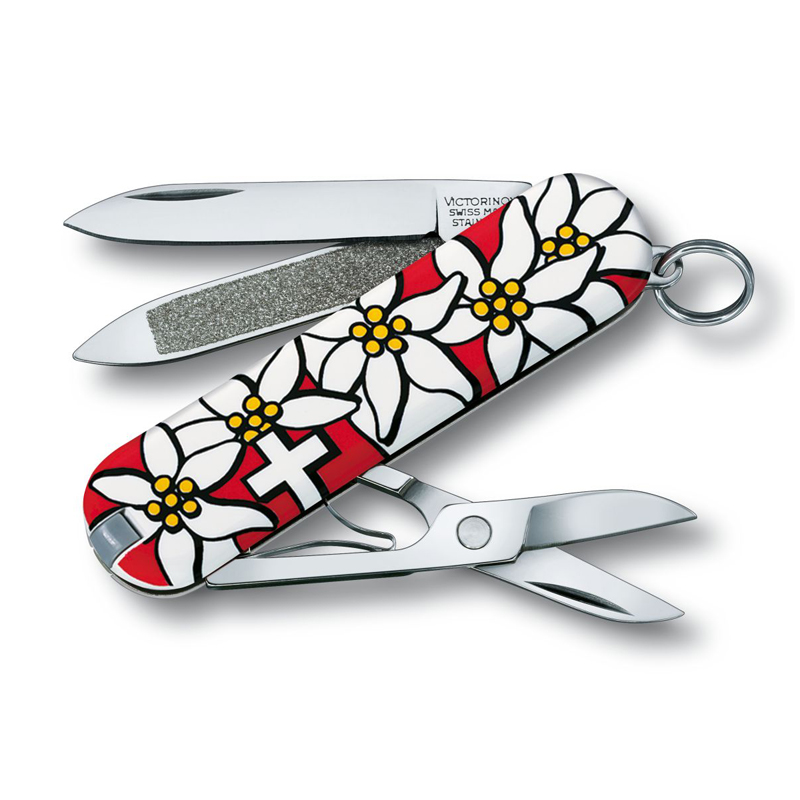 Ελβετικός κλασικός σουγιάς Edelweiss της Victorinox. Με πολύ χαρούμενο χρωματισμό και εξοπλισμένο με 7 βασικά εργαλεία αποτελεί ένα πολύ εξυπηρετικό gadget έτοιμο να βοηθήσει σε κάθε δυσκολία. Απλός και εύκολος στη χρήση, μικρός και ελαφρύς για εύκολη μεταφορά σε οποιαδήποτε δραστηριότητά σας.