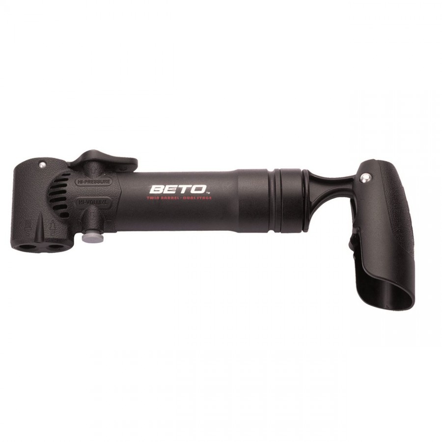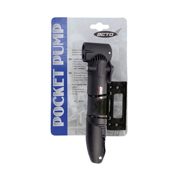 Τρόμπα ποδηλάτου από την Beto, διπλής ενέργειας την οποία μπορείτε να την έχετε πάντα μαζί σας επειδή χωράει στην τσέπη σας. Είναι κατάλληλη για βαλβίδες αυτοκινήτου αλλά και ποδηλάτου. Διαθέτει επίσης βάση στήριξης για να την στερεώσετε στο σκελετό του ποδηλάτου σας.