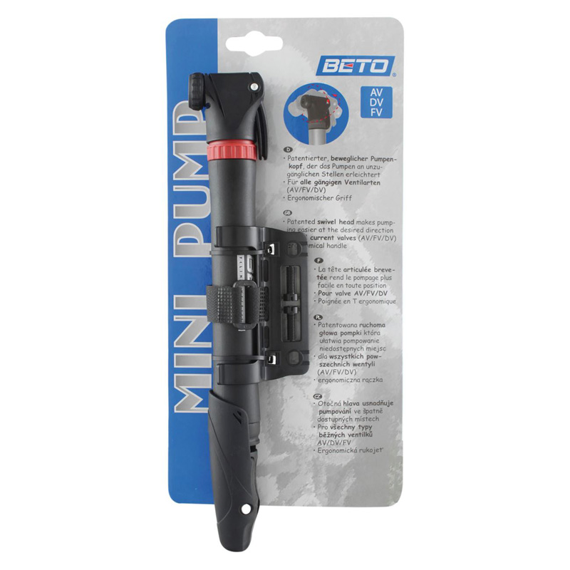 Τρόμπα ποδηλάτου χεριού με περιστρεφόμενη κεφαλή για εύκολη χρήση. Συμβατή με όλες τις βαλβίδες και βάση στήριξης για τοποθέτηση πάνω στο ποδήλατο σας.